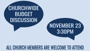 If you would like to learn more about the financial aspects of our church, please join us on November 23rd at 3:30pm in the Worship Center. This is open to all church members.