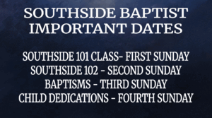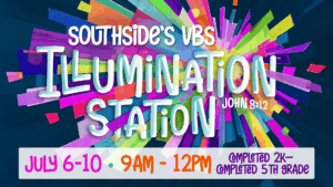 Our Half-Day Summer Camp will run from June 8-July 2. It will be from 9am to 1pm, Monday through Thursday. Each day will be filled with opportunities to learn the Bible, sing, craft, and play. Follow the link for more information! Southside members use the code SSBCMEMBER for $50 off at the time of payment.
