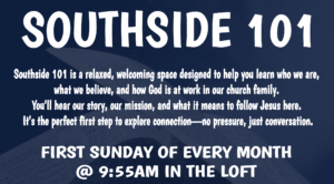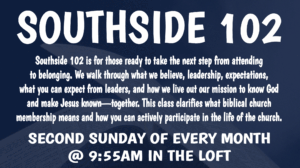 At Southside, we believe that God has called us to experience life together as we seek to know God and make Jesus known.