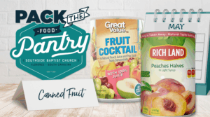 Each month we gather nonperishable goods for our food pantry. For the month of May, we are collecting 16oz canned fruits . You can leave the items at the Welcome Center.